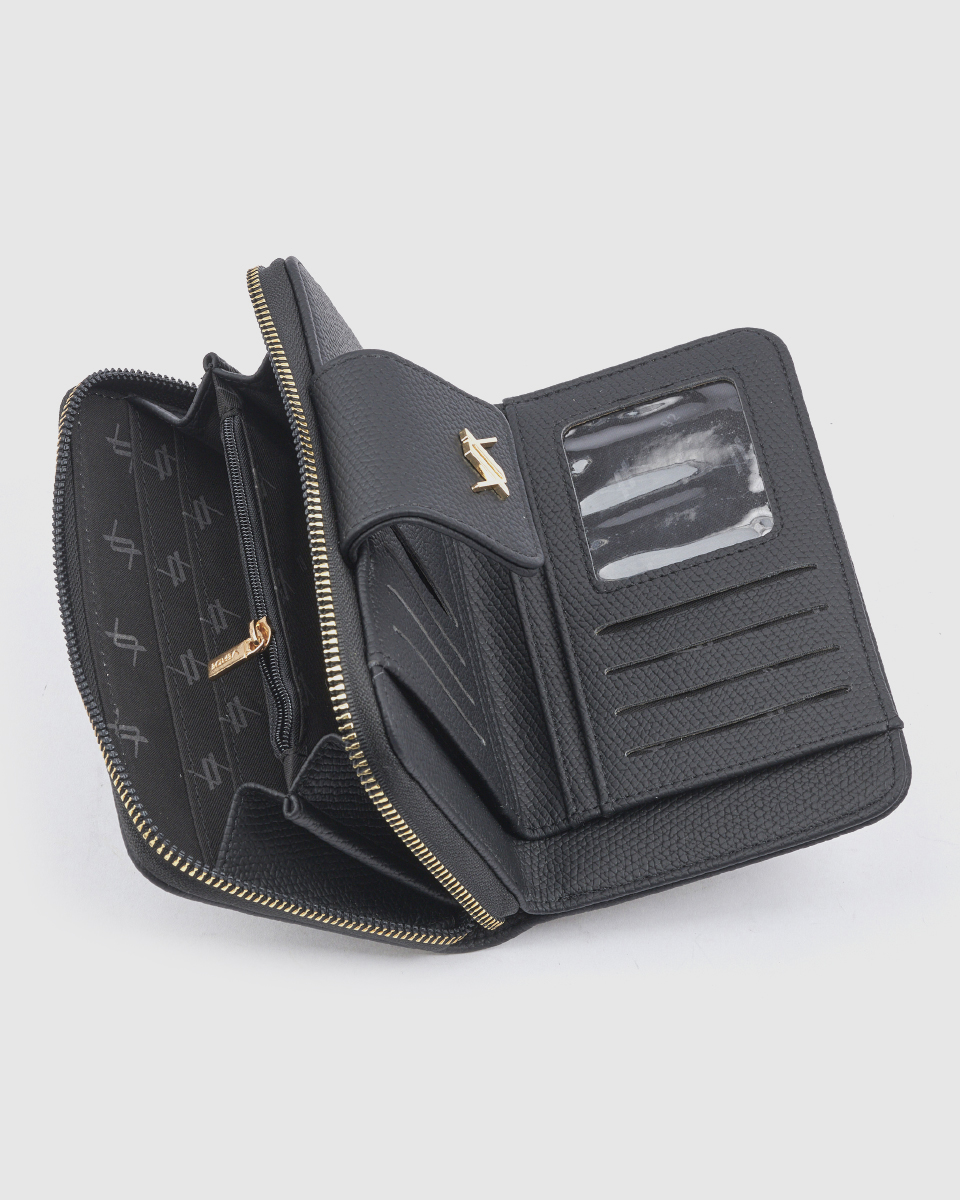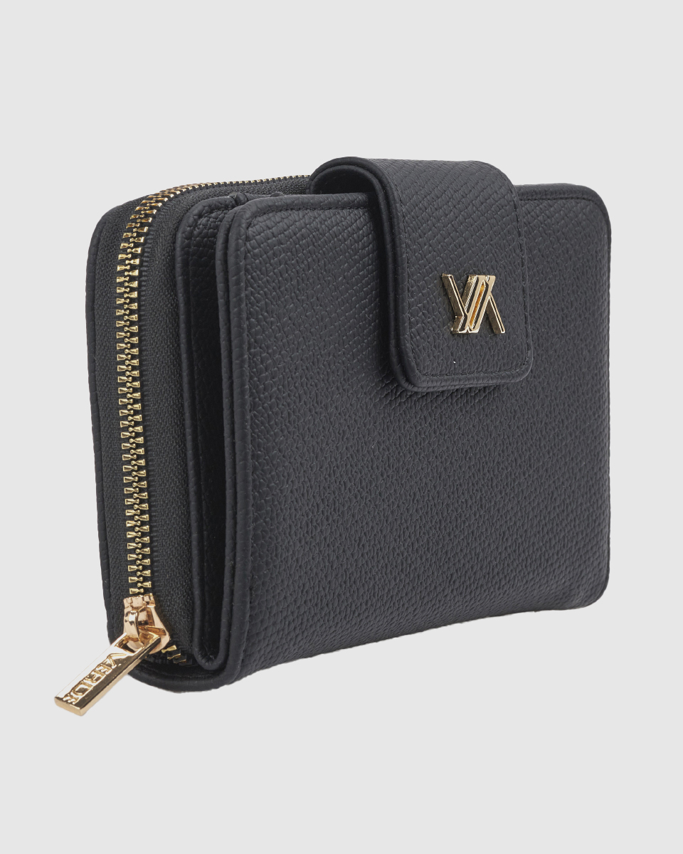 Ανακαλύψτε το γυναικείο πορτοφόλι Verde μαύρο με κομψή υφή και λειτουργική διάταξη. Διαστάσεις: 16,5 εκ. x 9,5 εκ. x 3 εκ.