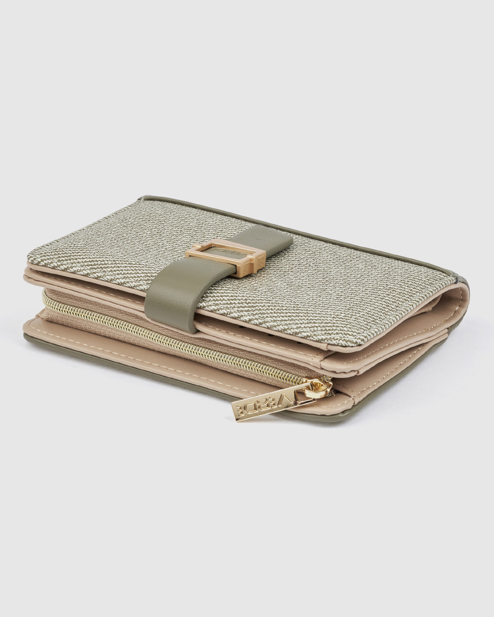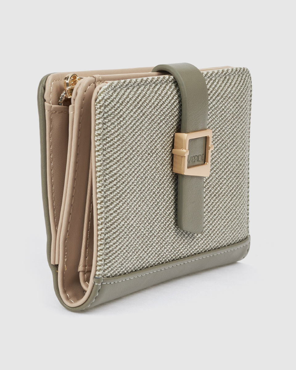 Ανακαλύψτε το κομψό και πρακτικό γυναικείο πορτοφόλι Verde σε μοντέρνα χακί απόχρωση, που συνδυάζει αρμονικά τη minimal αισθητική με την καθημερινή λειτουργικότητα. Το ιδιαίτερο design με υφασμάτινη υφή και λεπτομέρειες από συνθετικό δέρμα δημιουργεί ένα σύγχρονο και ευέλικτο αξεσουάρ για κάθε στιγμή της ημέρας.