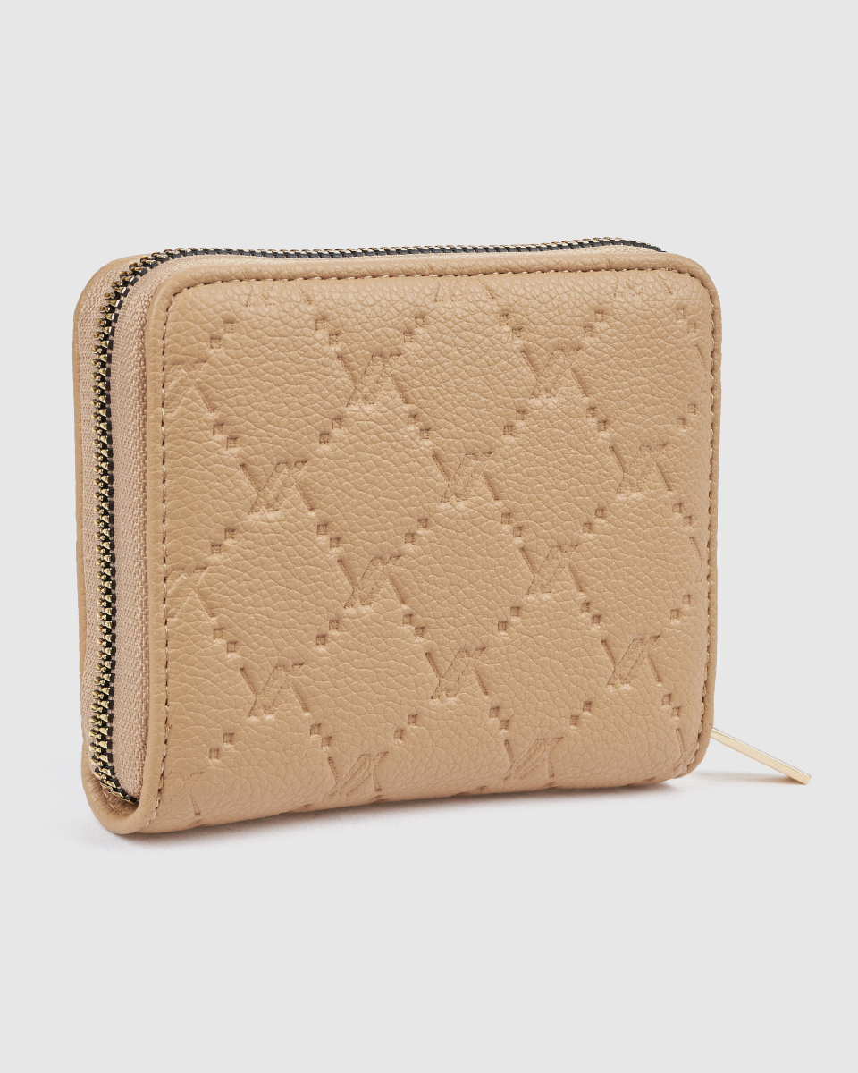 Ανακαλύψτε το γυναικείο πορτοφόλι Verde σε μπεζ απόχρωση, ένα κομψό και πρακτικό αξεσουάρ που ξεχωρίζει χάρη στο ανάγλυφο monogram σχέδιό του και την εκλεπτυσμένη αισθητική του. Η ιδιαίτερη υφή προσθέτει βάθος και χαρακτήρα, δημιουργώντας ένα διακριτικά πολυτελές αποτέλεσμα.